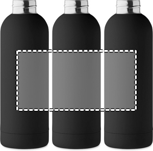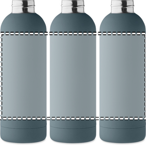 Dubbelväggig vakuumisolerande flaska i återvunnet rostfritt stål (90% återvunnet rostfritt stål och 10% rostfritt stål) med gummifinish och silikonhandtag. Volym: 500 ml.