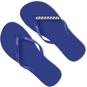 Strandtøfler i såle av polyetylen med pvc-stropp. Flip flop-tøffelen er tilgjengelig i 2 størrelser. M 36-39 og L 40-43.