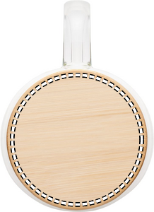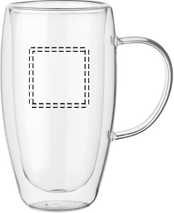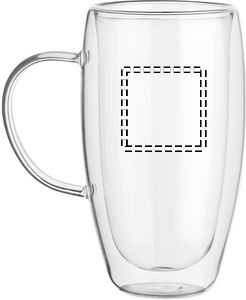 Dubbelväggig mugg i borosilikatglas med handtag och bambulock. Kapacitet: 450 ml.
