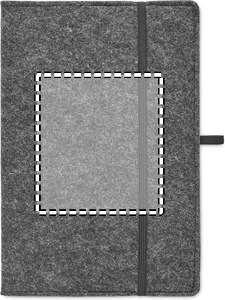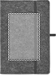 A5 notebook with RPET felt cover. 160 recycled paper lined pages (80 sheets / 70 gr/m²). Elasticated pen loop.