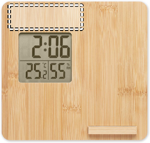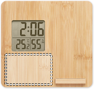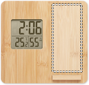 15W Wireless charger device including time, temperature and humidity display, smartphone stand function in bamboo casing. 1 CR2032 included. Wireless output: DC 9V/1.15A (15W) for quick charging. Compatible latest androids, iPhone® 8, X and newer. This natural looking weather station shows the current time, temperature and humidity on its LED display. Next to that you can use it to charge your smartphone wireless. This makes it a great, practical decoration for on your desk at the office or at home. Bamboo is a natural product, there may be slight variations in colour and size per item, which can affect the final decoration outcome.