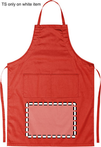 Förkläde med justerbart band som löper upp till halsen för bästa komfort. Två rymliga frontfickor. Material: 10% bomull/90% polyester, 190 g/m². Tillverkad enligt OEKO-TEX. Denna produkt är certifierad enligt OEKO-TEX® STANDARD 100.