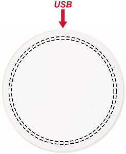 Trådløs lader. Koble enheten til datamaskinen eller et stikkontakt, sett telefonen på den og la den lade seg.