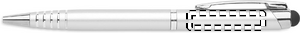 Kulspetspenna i återvunnen aluminium med vridmekanism och stylus. Blått bläck.