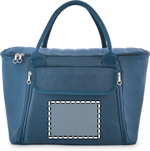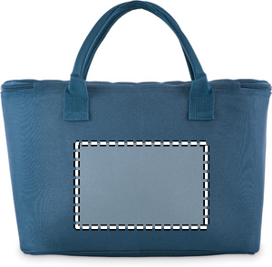 Picknickkylväska i 600D RPET-polyester för 2 personer med blixtlåsförsedd framficka inklusive bestick i rostfritt stål, 2 tallrikar i PS, 2 glas i PS och 2 bomullsservetter. Volym: 18L
