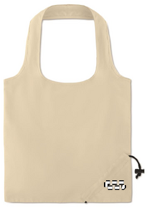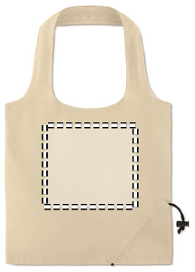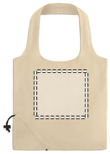 Handlepose som enkelt kan brettes og oppbevares i lommen eller vesken. Korte håndtak og snøring. Laget av bomull med en gramvekt på 105 gr / m².