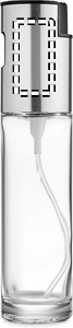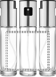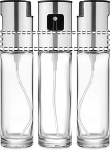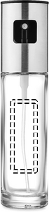 Glass oil dispenser spray with stainless steel lid. Capacity: 100 ml. Spray oil in the pan or over your food with ease thanks to this handy kitchen tool. Never drizzle too much olive oil on your salad again. Fill the glass dispenser with your oil of choice and spray it.