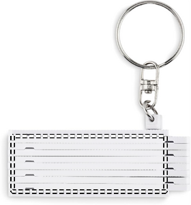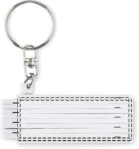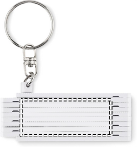 Nyckelring med tumstock för snickare i ABS. Längd: 50 cm.