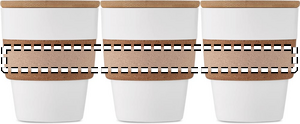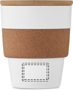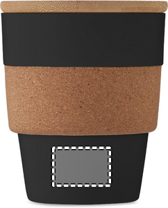 Single wall tumbler in PP with cork protective sleeve and bamboo lid. Capacity: 300 ml. As this is a single walled mug heat transfer can still occur. Bamboo is a natural product, there may be slight variations in colour and size per item, which can affect the final decoration outcome.