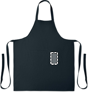 Justerbart förkläde med 1 stor framficka med 2 fack i 240 gr/m² ekologisk bomull. Med justerbar knapp på halsremmen.