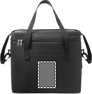 Kylväska i 600D RPET-polyester med PU-beläggning. Inklusive 1 frontficka och 1 inre nätficka. Isolerande PEVA-foder med 6 mm PE-skum. Inklusive 2 handtag och 1 justerbar axelrem. Volym: