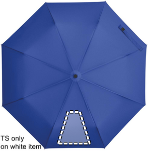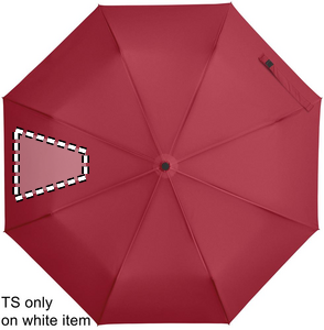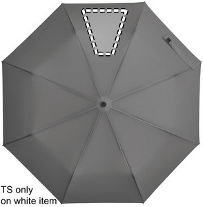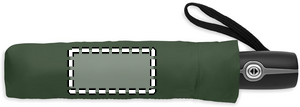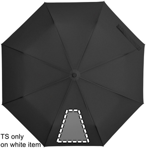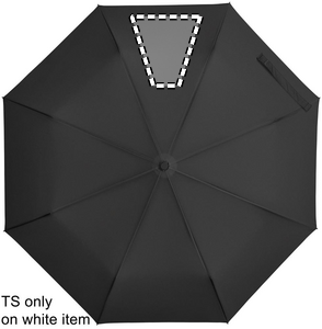 Sektionsparaply, 21 tum med stormfunktion i 190T pongee material med pläterat stålskaft, svarta med 2 sektioner glasfiber och kromade metallspetsar. Svart gummerat handtag med kupning. Viks ihop i tre sektioner. Automatisk stängning och öppning. Inkluderar matchande påse.