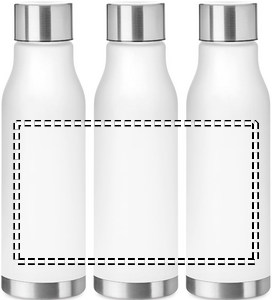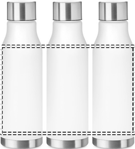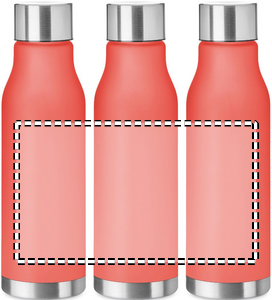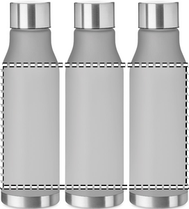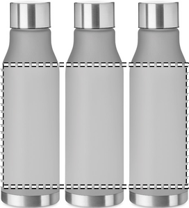 Flaske i RPET med gummiert overflate og lokk av rustfritt stål med indre RPET-lokk og silikonring. Fri fra BPA. Lekkasjefri. Kapasitet: 600 ml. Ikke tilpasset for kullsyreholdige drikker.