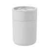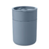 PP-glas med silikonskydd och skjutbart lock i PP. Volym: 330 ml. Eftersom det här är en mugg med enkel vägg kan värmeöverföring fortfarande ske.