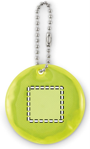 Rund reflekterande nyckelring i PVC. För reklamanvändning.