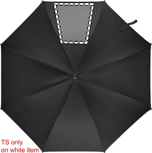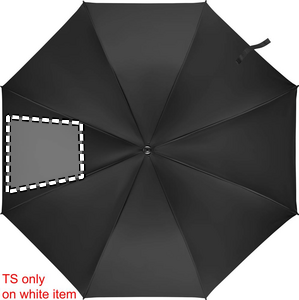 27''stormsikker paraply med manuell åpning og lukking i 190T Pongee. Glassfiberaksel og ribber. Svart topp og plastspisser. Rett svart håndtak med gummiert overflate.