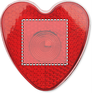 Hjärtformad röd reflexlampa i ABS med klämma på baksidan. Olika ljusfunktioner. Inklusive 2 utbytbara LR44-batterier.