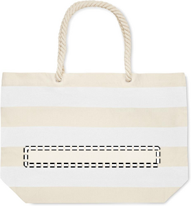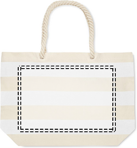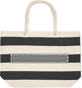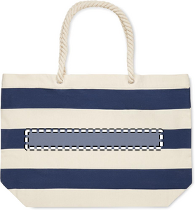 Randig strand- eller shoppingväska i bomull med snörhandtag. 220 gr/m².