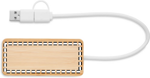 3-portars USB-C/A-hubb i bambufodral. 1 x Typ-C och 2 x Typ-A. Utgång: 2 x Typ-A och 1 x Typ-C. Ingång: 2-i-1 Typ-C & Typ-A. Kabellängd: 20 cm.