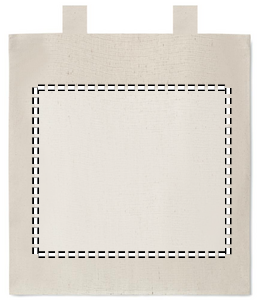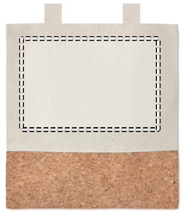 Handlepose med korkdetaljer. Boksen har lange håndtak. Bomullens gramvekt er 160 gr / m².