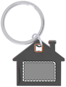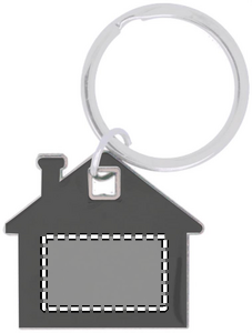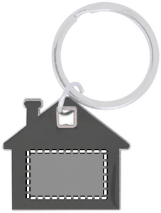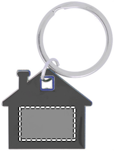 Nøkkelring formet som et hus i rustfritt stål og ABS plast.