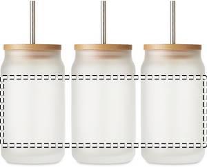 Mason cocktail jar with special coating for sublimation with bamboo lid. Including a Stainless Steel straw. Capacity:400 ml.
