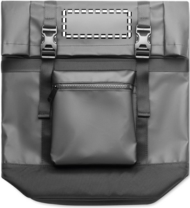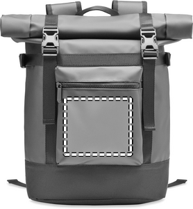 Rolltop backpack in 50C tarpaulin with padded back, base and shoulder straps reinforcement. Front zippered pockets.