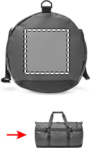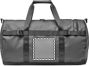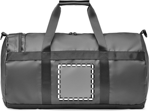 Duffle bag, sports or travel bag in 50C tarpaulin with zippered side compartment and zippered inner pocket. It has a comfort grip handle and padded base.