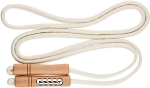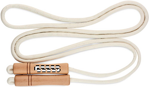 Hoppetau i bomull med trehåndtak. Leveres i en bomullspose.