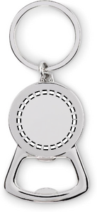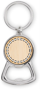 Nyckelring med flasköppnare i metall med bambu-detaljer.