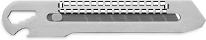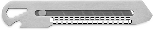 Stainless steel retractable knife with 8 carbon steel blades, bottle opener, wrench and ruler.
