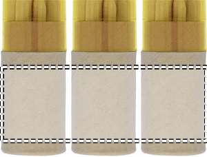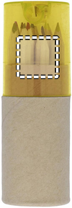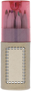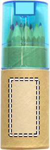 12 fargeblyanter i tre. Blyantspisser i gjennomsiktig lokk.