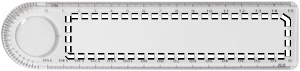 15 cm plastlinjal med forstørrelsesglass og vinkelmåler.