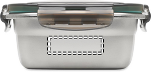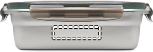 Lunchlåda i återvunnet rostfritt stål med PP-lock och 4 spännen, ett på varje sida. Volym: 850 ml.