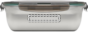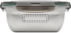Lunchlåda i återvunnet rostfritt stål med lock i PP och 4 spännen, ett på varje sida. Inklusive skiljevägg. Volym: 1500 ml.