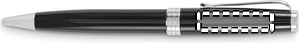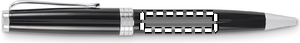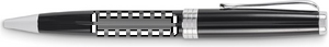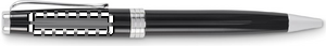 Kulspetspenna med vridfunktion och skaft i återvunnet rostfritt stål. Blått bläck. Levereras i svart låda.