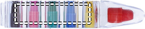 Sett bestående av 6 fargestifter i en klar beholder.