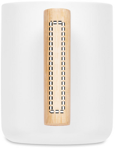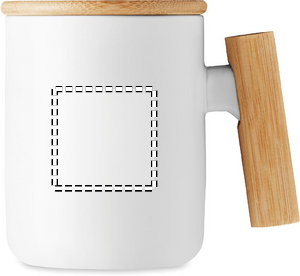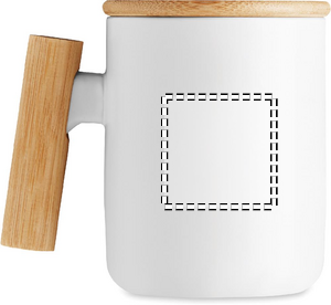 Porcelain mug with bamboo lid and handle. Capacity: 380 ml.