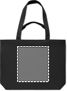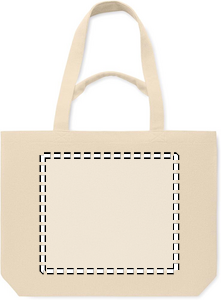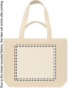 Kasse-/strandväska i återvunnet tyg (60% återvunnen bomull, 40% återvunnen polyester) med korta och långa handtag. 320 gr/m².
