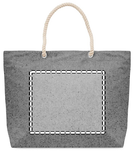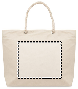 Strand- eller shoppingväska i återvunnen bomull (80% recycled cotton, 20% regular cotton) med snörhandtag. 220 gr/m².