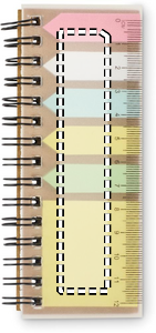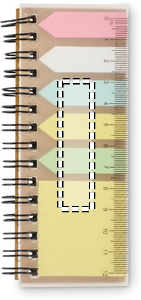 Memopad i PP med klisterlappar och 5 färgmarkeringspennor i återvunnet papper. Ringband.
