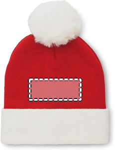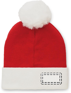 Christmas knitted beanie with cuff and bobble in stretchable acrylic.