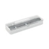 Bestickset i rostfritt stål med PP-fodral. Setet innehåller gaffel, kniv och sked.