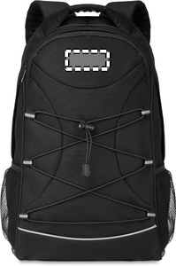 Ryggsekk i 600D RPET med mørke blonder foran og reflekterende detaljer foran. Meshlommer på begge sider.