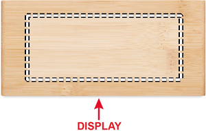 Trådløs ladestasjon og kombinert vekkerklokke med blå LED-skjerm som viser tid og temperatur i Bambus. Transformator inkludert. Trådløs ladestyrke: DC5V / 1A. Kompatibel med telefoner med Qi-ladning som Android, Samsung 7 og nyere, iPhone® 8, X og nyere, Huawei og andre. Bambus er et naturlig materiale, og det kan derfor være forskjeller i farge, noe som også kan gi forskjellige effekter i lasergravering
