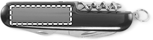 Fickkniv med flera funktioner i återvunnet aluminium. 5 funktioner: Knivblad, kapsylöppnare, skruvmejsel, korkskruv och burköppnare.