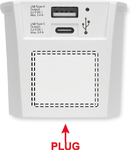 SKROSS® MUV USB A/C. World travel adapter with 15W USB Type-C and 12W Type-A ports.