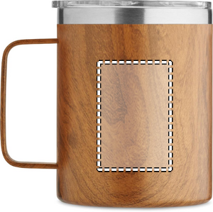 Double wall recycled stainless steel (90% recycled stainless and 10% stainless steel) mug with wooden look and sliding sip hole cover. Capacity: 300 ml.