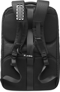 Stor 17-tums dataryggsäck för laptop i 600D RPET polyester. Har flera fack som ett huvudfack för kläder, två vadderade fack för laptop och surfplatta med mera. Vadderad ryggpanel, axelrem och handtag.