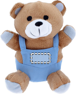 Bamse i plysj materiale, Lyseblå klær.